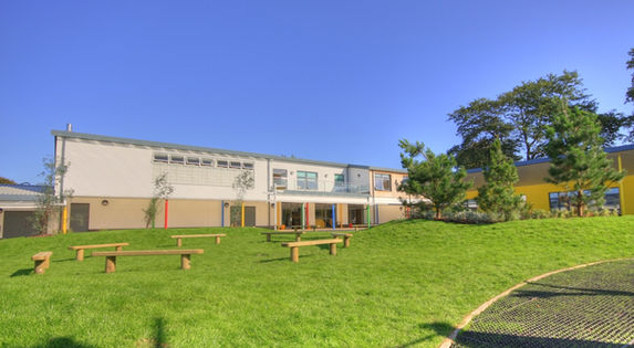 This new-build, two-form entry primary school is set within an open green space. In response to the site's natural setting, the design concept envisioned a series of 'pavilions in a park.' This approach led to four classroom blocks, each connected by covered walkways to a central activity hub housing the school's hall, dining room, kitchen, and administrative facilities.